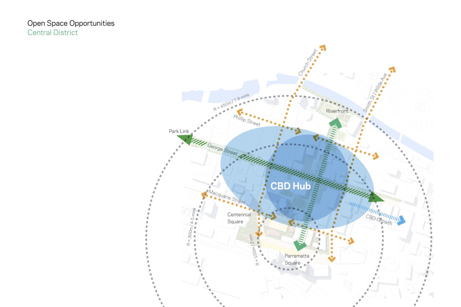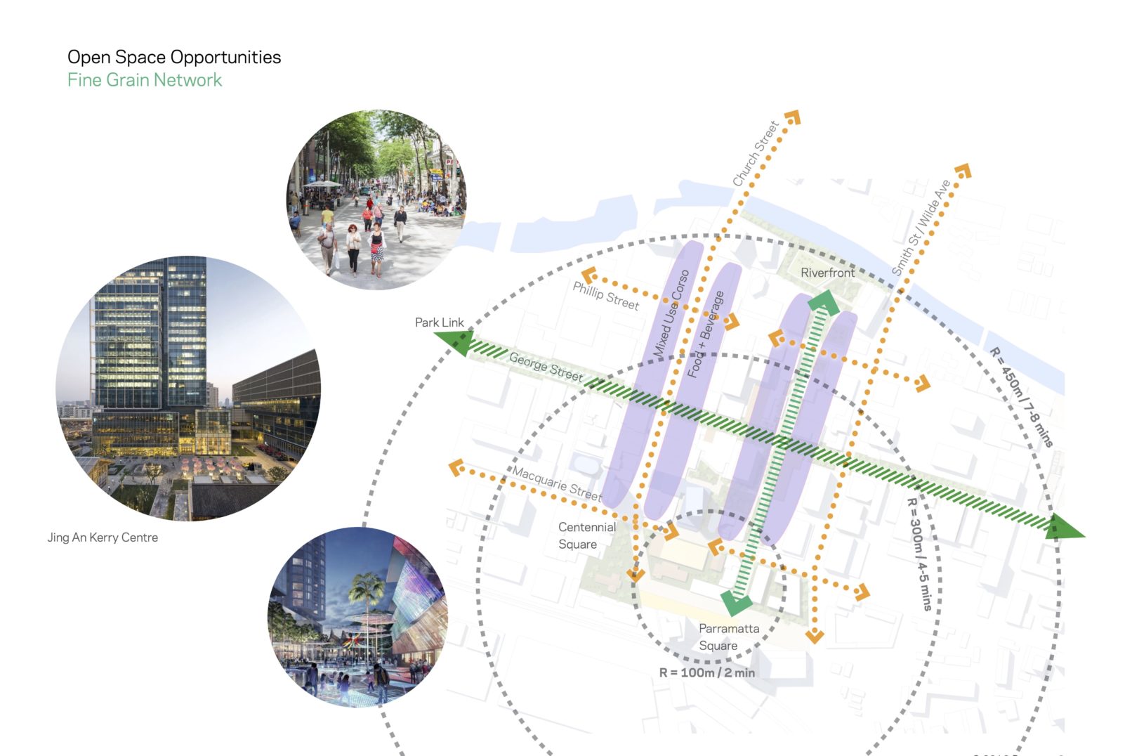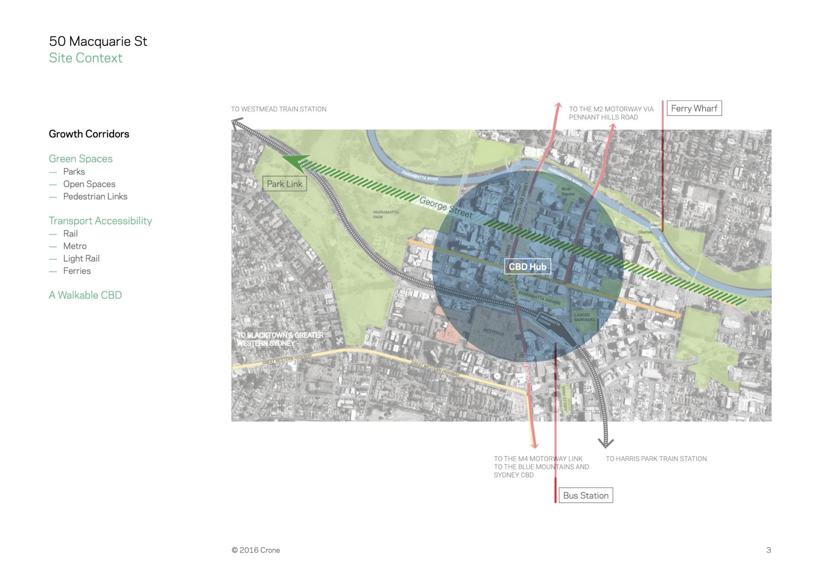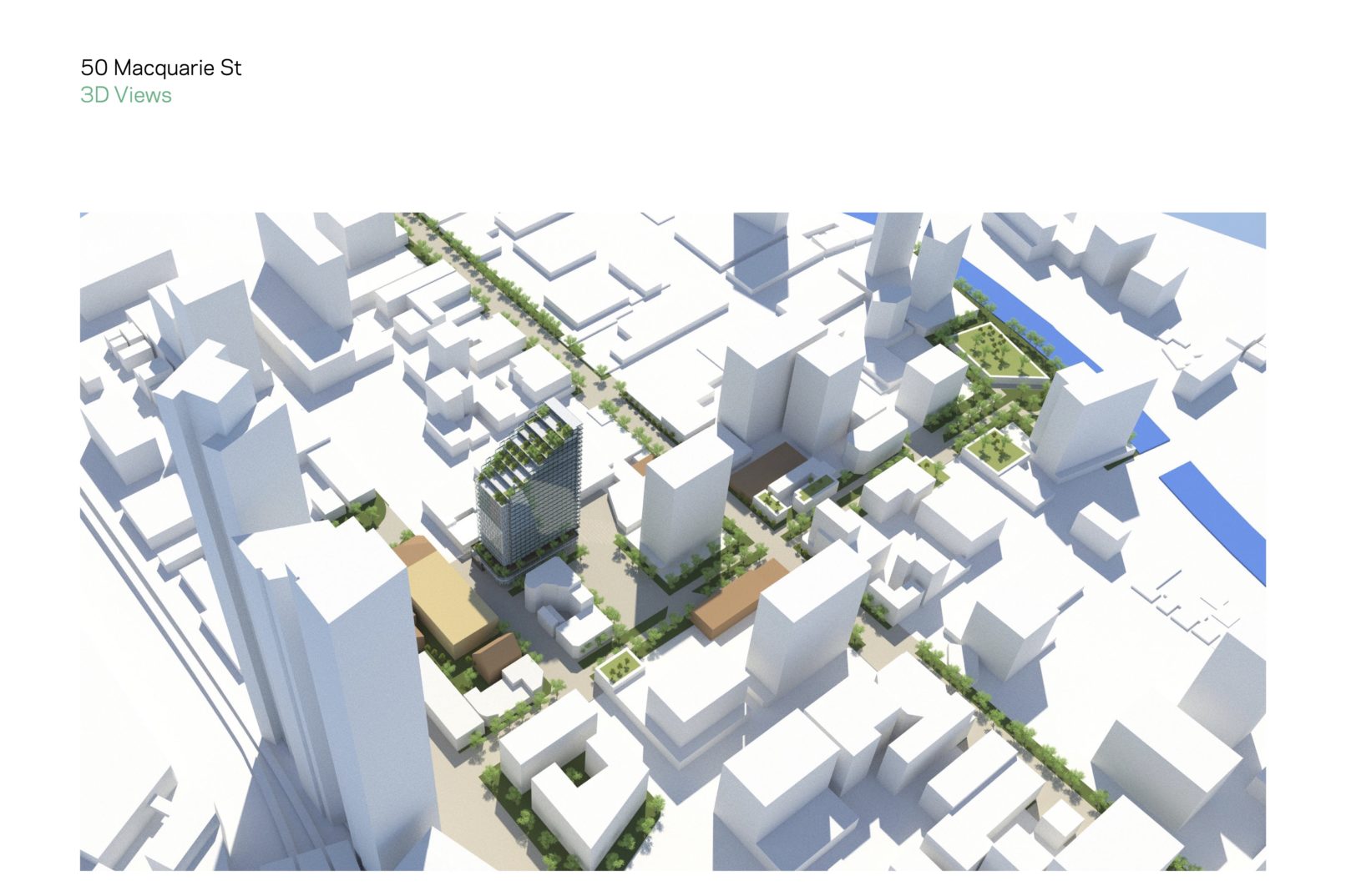 Städtebauliche Entwurfsstudie für den Neubau eines Bürogebäudes im neuen Geschäftsdistrikt von Sydney.