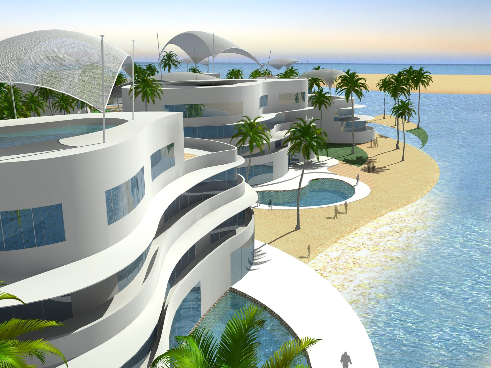 Befreit von den meisten typischen Konventionen und Planungsbeschränkungen ermöglichte uns dieses Projekt, eine einzigartige Hotelumgebung zu entwerfen, die als Hybrid zwischen privater Villa und Resort-Hotel fungiert. Der Entwurf ist inspiriert vom Genius Loci der umgebenden Elemente der Natur iwelche zusammen mit traditionellen architektonischen- und historischen Komponenten verwoben werden. Eine zeitgemäße, ikonisches Entwurfslösung schafft hierbei ein einzigartiges neues Reiseziel innerhalb der "World Islands".