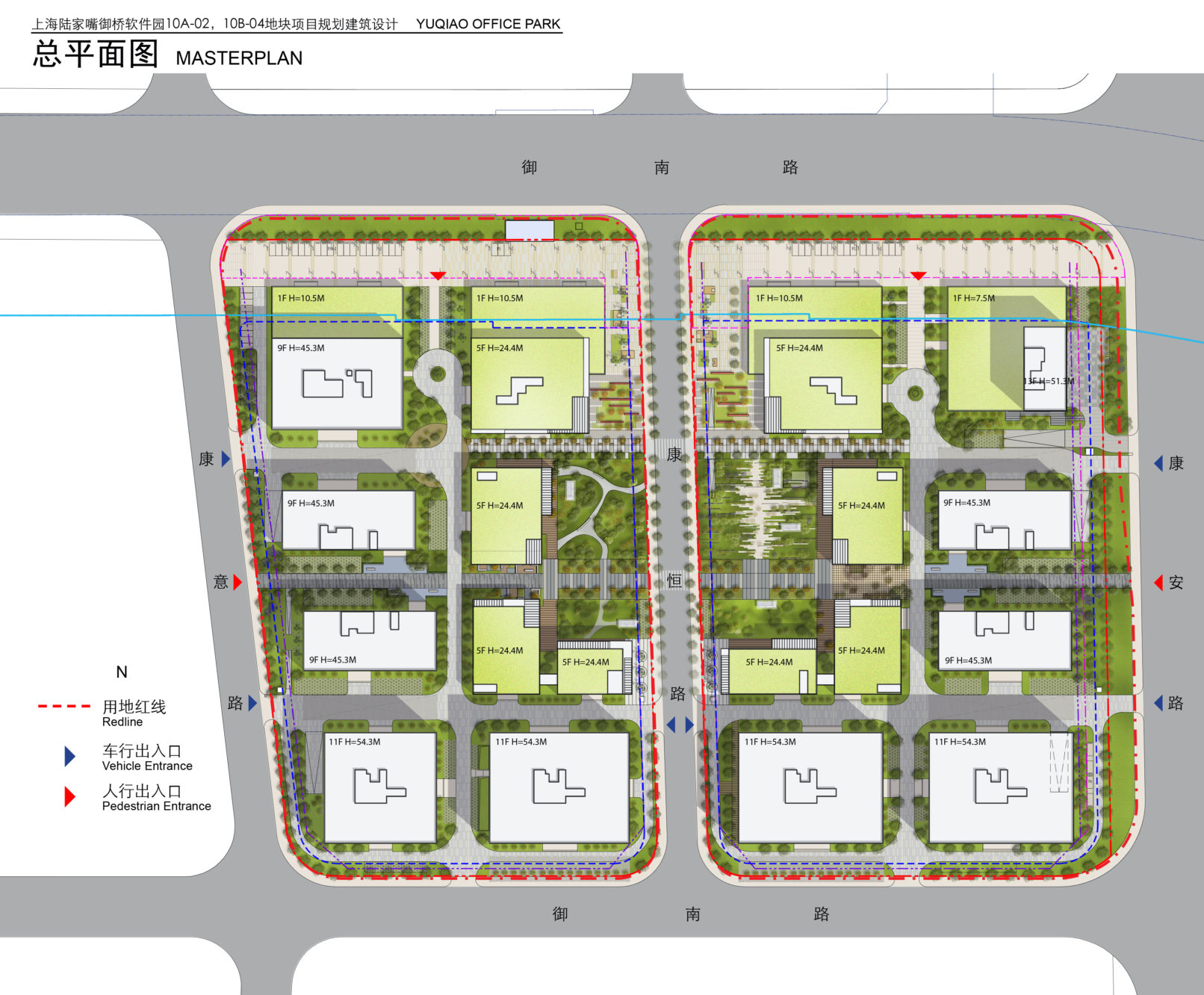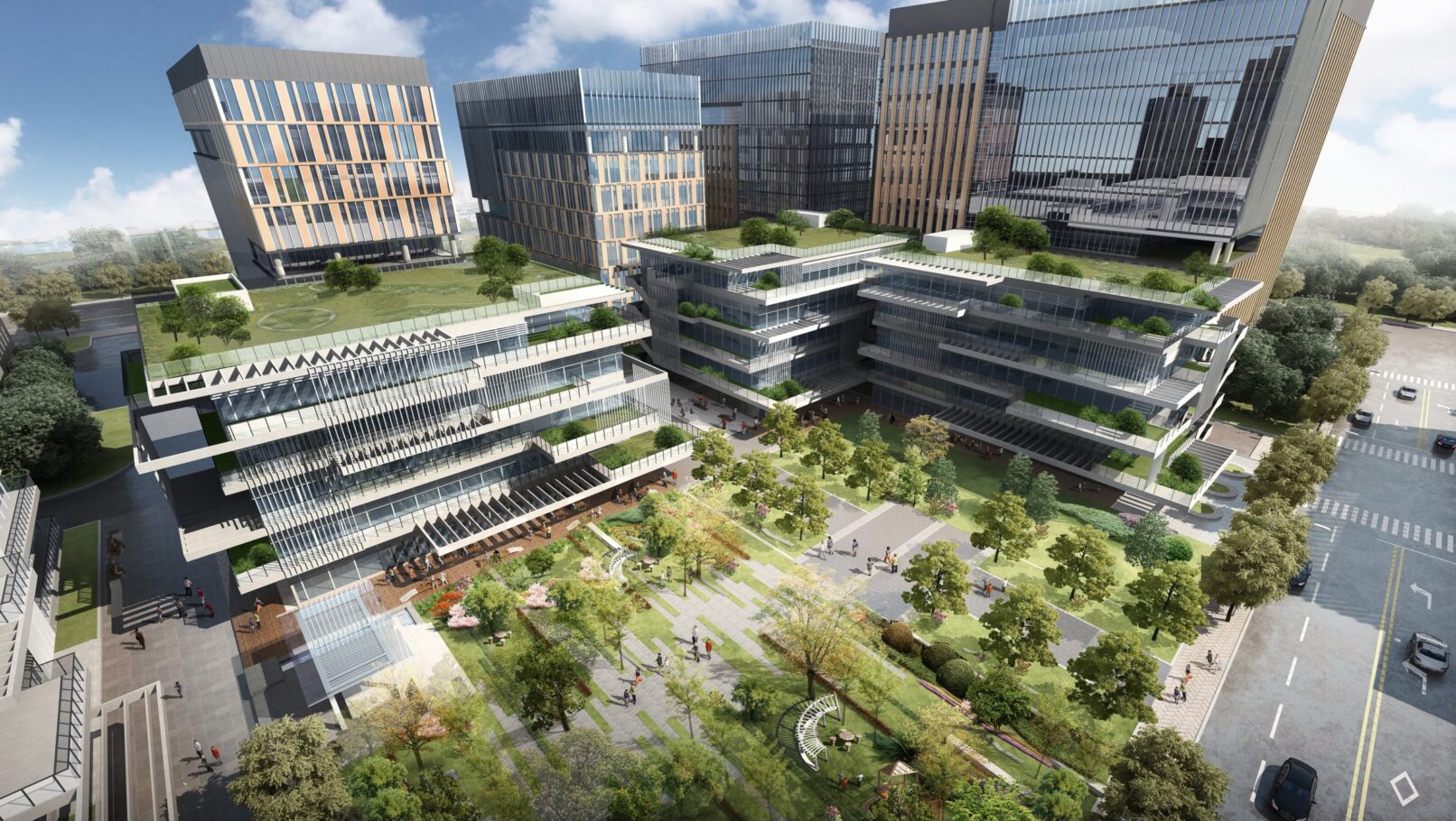 Nach der erfolgreichen Genehmigung des durch uns entwickelten Yujiao-Masterplans wurden wir mit der Planung zwei weiterer Grundstücke beauftragt. Um ein möglichst grosses Spektrum an zukünftigen Nutzern anzusprechen, entwickelten wir eine S-M-L-XL-Strategie, die eine hohe Flexibilität für potentielle Mieter bietet. Die Bürotürme gruppieren sich dabei entlang der jeweiligen Grundstücksperimeter und ergänzen die bestehenden urbanen Blocktypologien. Ein zweiter Ring kleinerer Bürogebäude gruppiert sich um einen großzügigen zentralen Gartenbereich. Jedem Büroarbeitsplatz wird so die Möglichkeit geboten, innerhalb von 3 min. Zugang zu einer Grünfläche zu erhalten. Zusätzlich werden mehrschichtige, vertikale Fassadenbegrünungen als "Living walls" integriert. Dadurch entsteht eine nahezu entmaterialisierte Bürotypologie, die die Natur nicht nur zum integralen Bestandteil des Gebäudes selbst macht, sondern die Grenze zwischen Außen- und Innenräumen verwischt.